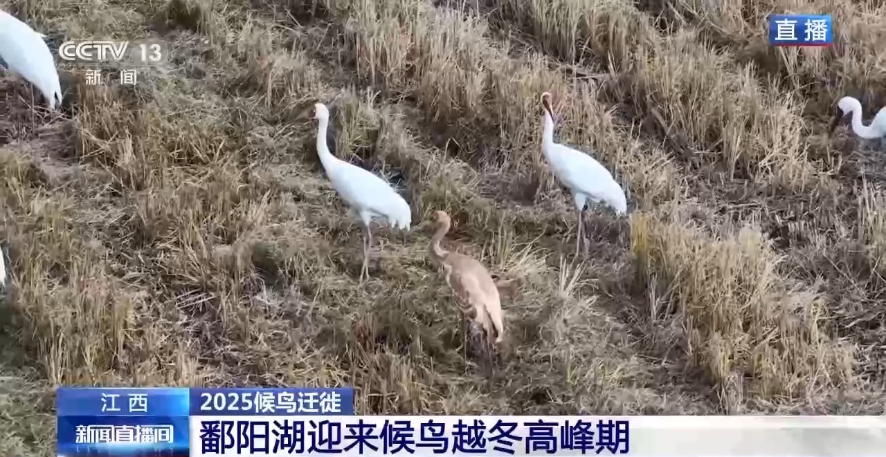 据最新监测数据,鄱阳湖国家级自然保护区内9个湖泊共确认有50余种、3万余只水禽。越来越多的候鸟抵达越冬地。目前,江西鄱阳湖出现白鹤、白鹳等珍稀物种。那么现在鸟儿们在做什么呢?请联系现场总台记者严俊奇。