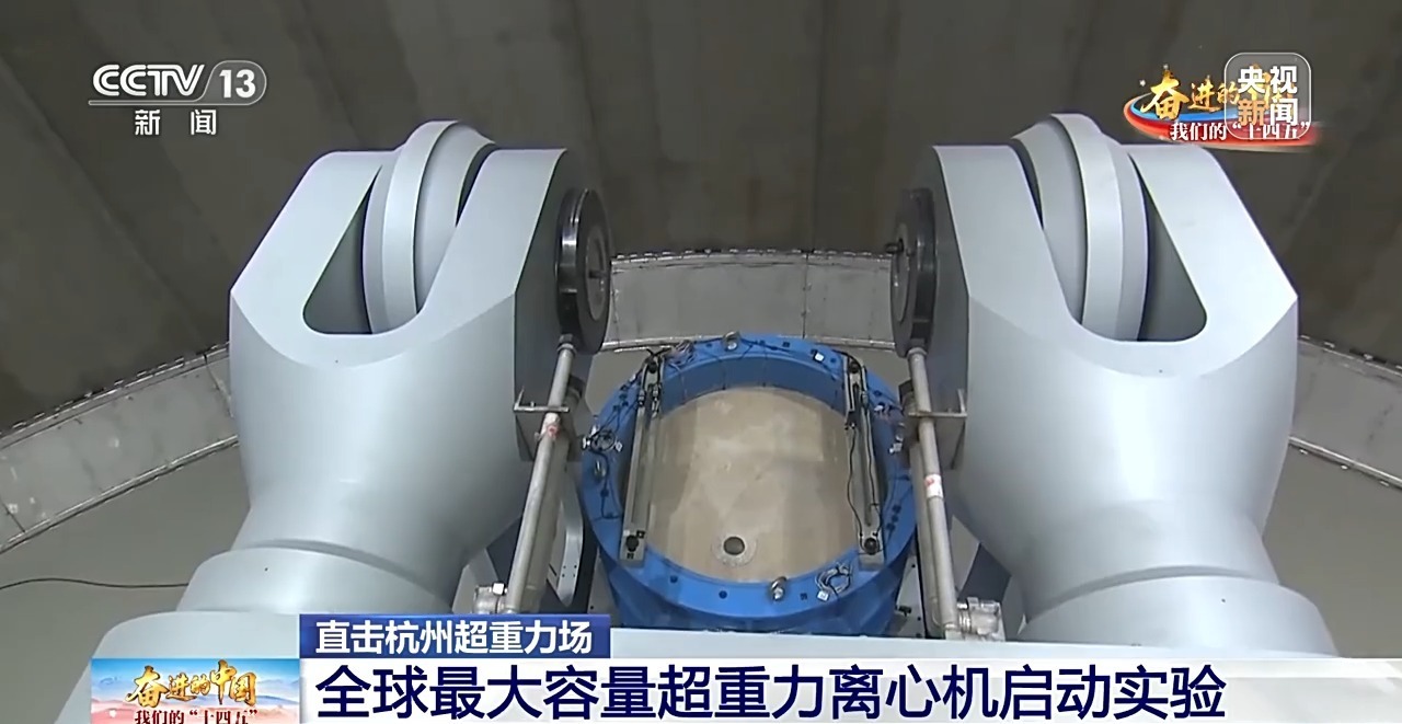 央视记者李晶晶:来到这里就像进入了一个未来派基地。四周极其坚固的金属墙壁,散发着科技气息。最引人注目的是我身后的“那台”世界上最大容量的超重力离心机。正式上线只是第一步。然后,配备各种实验设备,完成一系列科学验证。