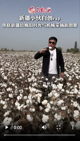 https://tnews.xjmty.com/app/slyapp/sh/202510/t20251023_31216714.html?cid=31216714 sid=149 ctype=article uid=zj29nTYGFA 《当采棉工吞噬白海时,我看到父母的青春在棋盘上绽放。无人机画出新的》 蓝天上的笔触,北斗导航装置的精准如绣花……”陈勇,一个90后出生的新疆男孩,成长于新疆咸海市。小时候和父母一起采摘棉花的回忆启发他创作了一首简单的说唱歌曲《说唱新疆棉花》。简单的歌词和轻快的节奏引起了网友的共鸣。一位网友表示:“听这首歌我感动得热泪盈眶,前半段讲的是我童年的经历,后半段讲的是新一代农民的现状。”