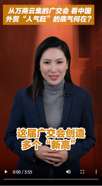 【国际3分钟】广交会以来,数万客商云集,中国外贸火爆的基础是什么? 2025-10-25 第138届广交会第一期近日落下帷幕。展览面积、展商数量、国外采购商数量均创历史新高。人工智能机器人、智能家居、新能源汽车等高科技产品成为焦点,展现了中国外贸的强大韧性和创新活力。在全球供应链重构之际,广交会将以实实在在的贸易和创新产品,向世界发出中国正在以更高水平的开放联接世界、赋能世界的明确信号。